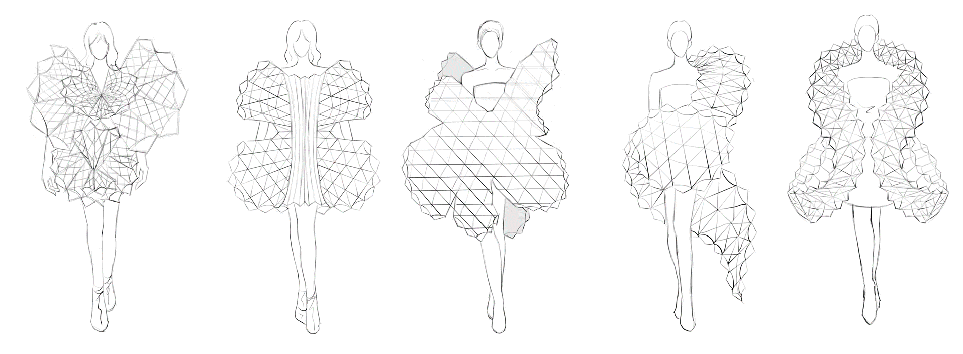 张祖芳介绍说,“我们采用的新材料纸张不仅轻盈、耐用,也是对环保与可持续性的承诺,同时辅以镭射面料、光敏面料、AI制图、3D打印技术与激光切割等材料和工艺,彻底颠覆了传统服装制作的局限,使得复杂结构与精细图案的实现成为可能,让每一件作品都成为科技与艺术完美交融的杰作。”