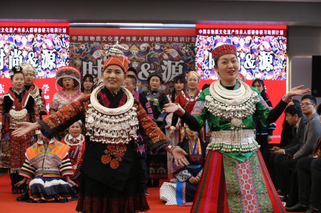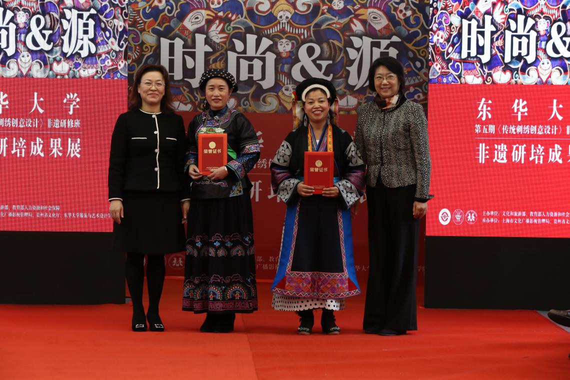 李俊介绍,服装与艺术设计学院作为学校非遗培训的具体实施机构,发挥学科与科研优势,以独具特色的师资条件,已成功举办四期《传统刺绣创意设计》培训班。非遗是文化的“金山”,时尚的源头蕴含在中国博大精深的传统文化中,贵州非遗传承人是民族文化的守护者与传承者,第五期培训将民族文化基因通过现代方法诠释,结对创意设计并在上海地标性的商业中心市百一店进行展示,真正走进了百姓的生活中,实现了活态传承的意义。他表示学院将继续努力推进非遗研培的各项工作,同时完善相关学科体系建设,更好地发挥文化传承创新功能。