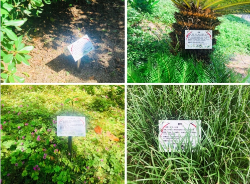 为了更好创建绿色生态校园,环境科学系党支部联合本科生党支部,在深入认知植物的基础上,结合专业知识,为校园内的植物设计了“名片”——以标牌的形式给校园内的植物做标记,“名片”上注明植物的形态特征、品种特性、环境功能和校园分布,让植物的信息一目了然。为了达到不破坏植物又吸引师生的效果,挂牌的方式也经过精心设计,高大的乔木采取挂牌的设计样式,用细绳将“名片”悬挂在树干上;低矮的灌木采取插牌的设计样式,用金属杆将“名片”竖立在泥土中。在历时6个月的植物“名片”挂牌活动中,共计标识了41个品种的植物,设置了75块植物标牌,达到了较好的宣传效果。挂牌结束后,党支部师生党员们也自发成立了“标牌维护志愿队”,后续将对安置好的植物标牌进行定期检查和持续更新,努力把植物“名片”延伸到学校的每一个角落。
