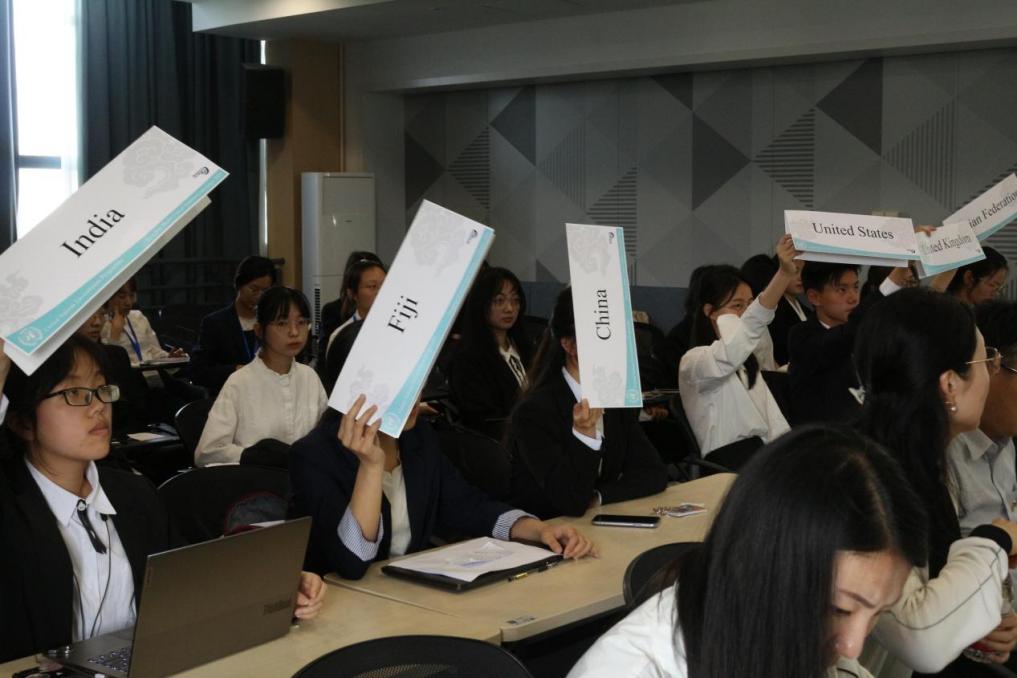 生态兴则文明兴。在经济全球化的背景下,如何共同推进全球生态环境治理?全体模联社团成员还以“环境保护”为议题进行了全英文模拟联合国大会实战演练,直面全球发展的痛点问题。模联协会临时党支部党员代表宋安然提到:“参与此次活动了解到了我们党在中国外交史中总揽全局、协调各方的领导核心作用,同时作为模联临时党支部的一员,我们也必将在新时代接续奋斗、锐意进取,以思辨会未来,以胸怀会天下,服务于中华民族从站起来、富起来到强起来的伟大进程”。