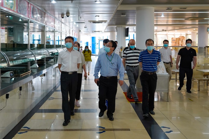 杨伟人一行先后实地走访了复合材料协同创新大楼实验室、第一食堂、教师之家(隔离场所)、PCR实验室等,实地查看学校实验室开放使用和危化品管理、人员登记情况,食堂管理和食品安全、菜品价格情况,校内隔离点设置和留观等候区准备情况,以及PCR实验室运行和核酸检测情况等,并现场提出指导意见。